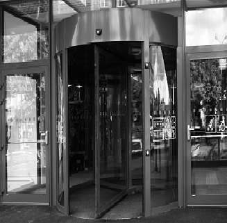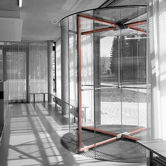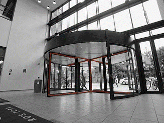 TORMAX - ova karuselna vrata prepoznatljiv je po ukrštenim okretnim ramovima i zaobljenim zidovima od ALU - staklene konstrukcije.